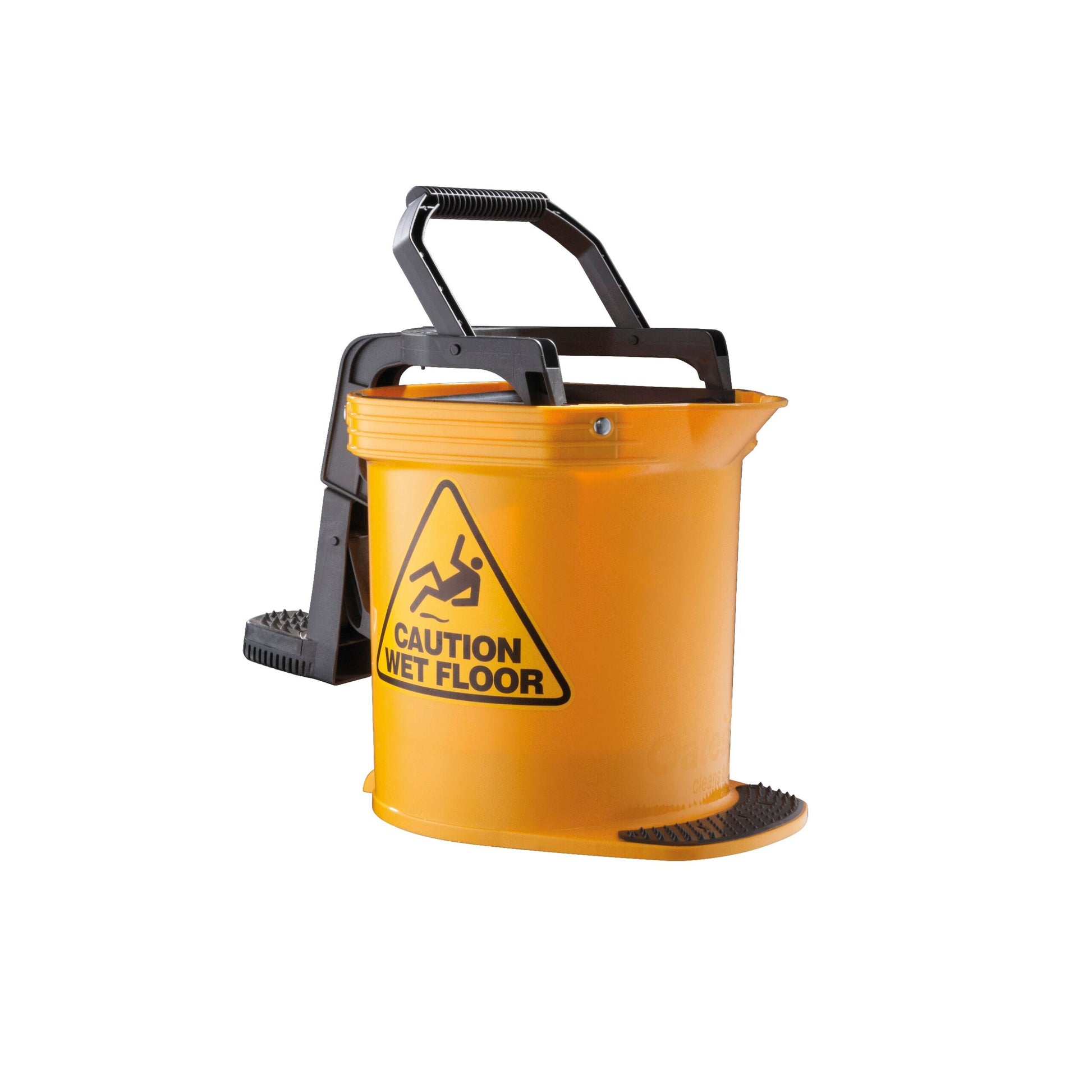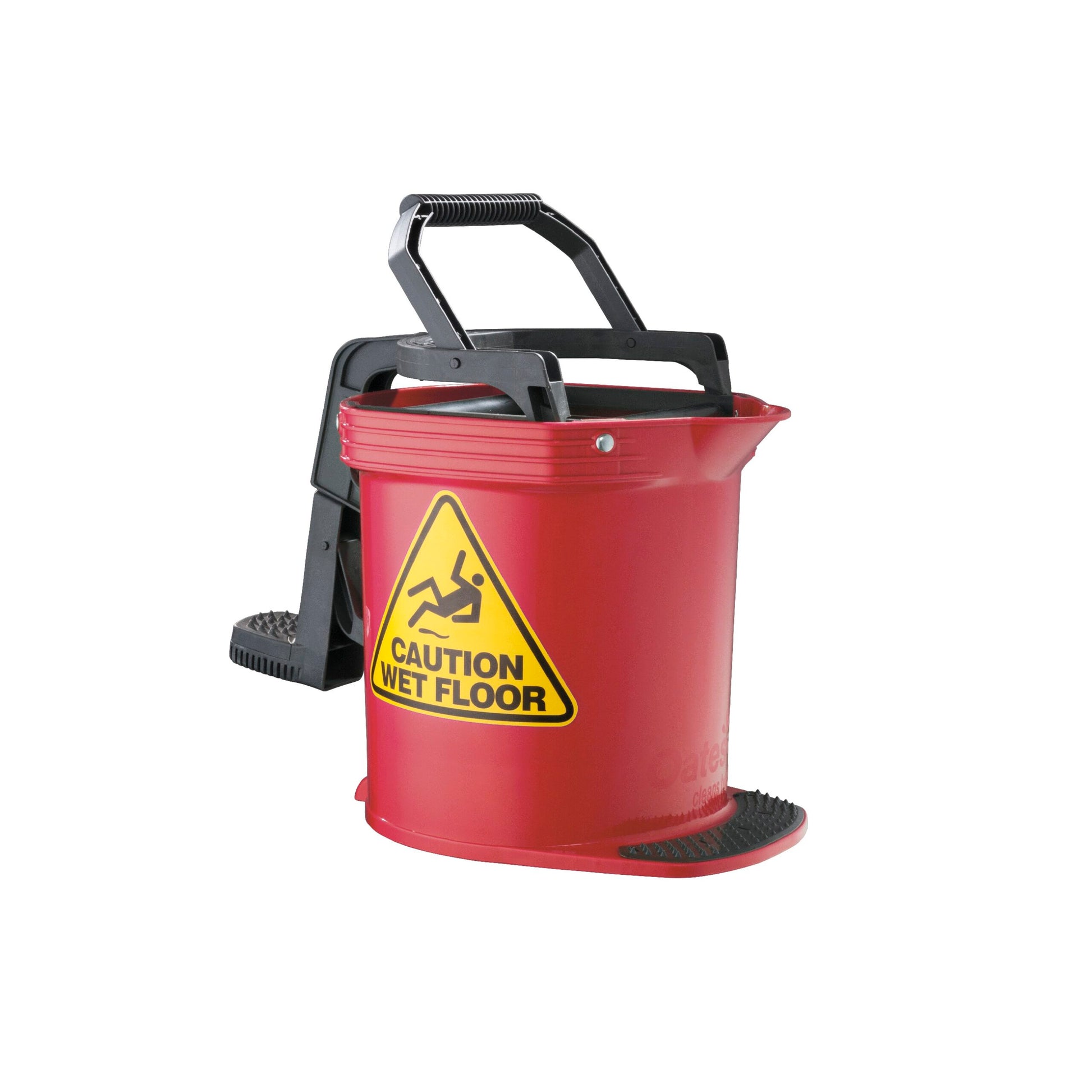 - Ergonomic, easy action plastic wringing system with non-slip foot pedal