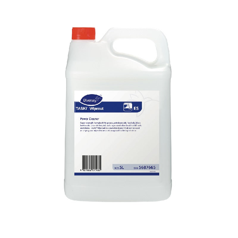 Diversey Wipeout Power Cleaner 5L is a powerful multi-purpose cleaner designed to remove tough soils and stains. Its super-strength formula quickly shifts grease, petroleum oils, food oils, black heel marks, price stickers, ink, crayon, and other stubborn residues. Ideal for use in commercial, industrial, and professional cleaning applications, it delivers reliable results on a wide range of surfaces.